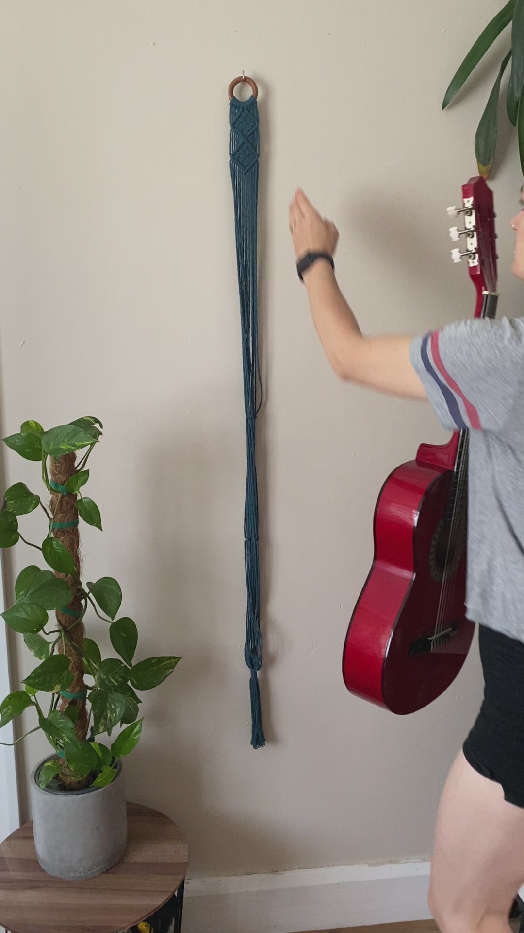 Tired of seeing your unused guitar taking up valuable floor space? You need a macrame display hanger!